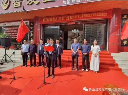 市社科联主席裴秋德,县委常委、宣传部长刘万福,鲁山县政协副主席邢春瑜,县委宣传部副部长、县广电局局长闫经文,平顶山日报社驻鲁山站站长常红涛,县文化广电和旅游局副局长王国欣和文化志愿者出席了此次开班仪式。刘万福同志为公益课堂开班致辞,邢春瑜同志主持开班仪式并宣布开班,王国欣同志和县文化馆馆长王红旗为智爱国学艺术学校授牌。