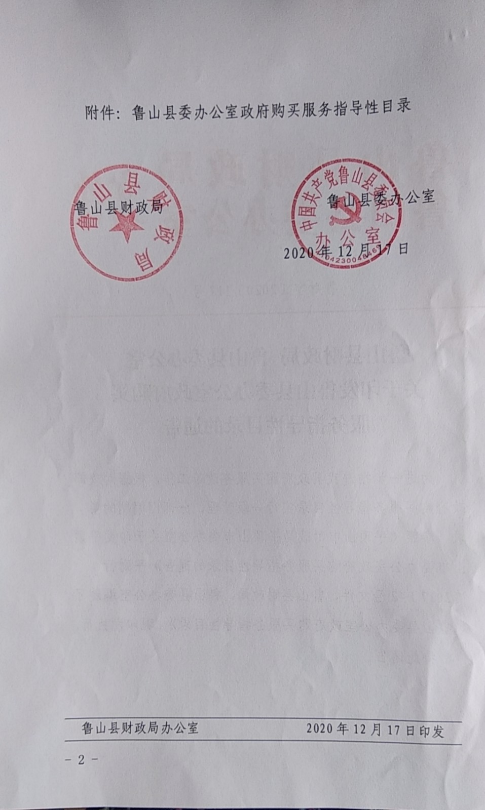 关于中共鲁山县委办公室 政府购买服务指导性目录的通知