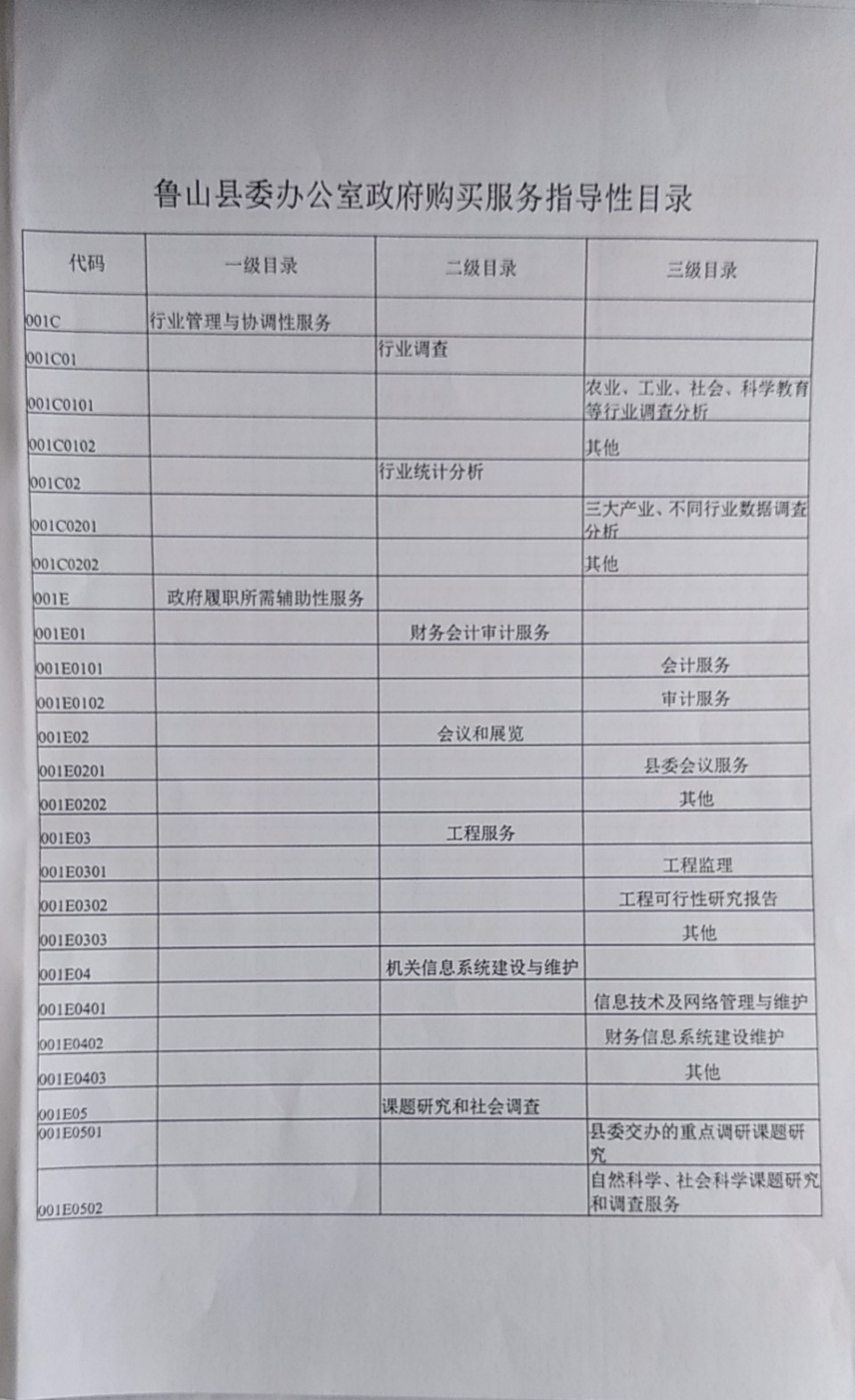 鲁山县信访局政府购买服务指导性目录