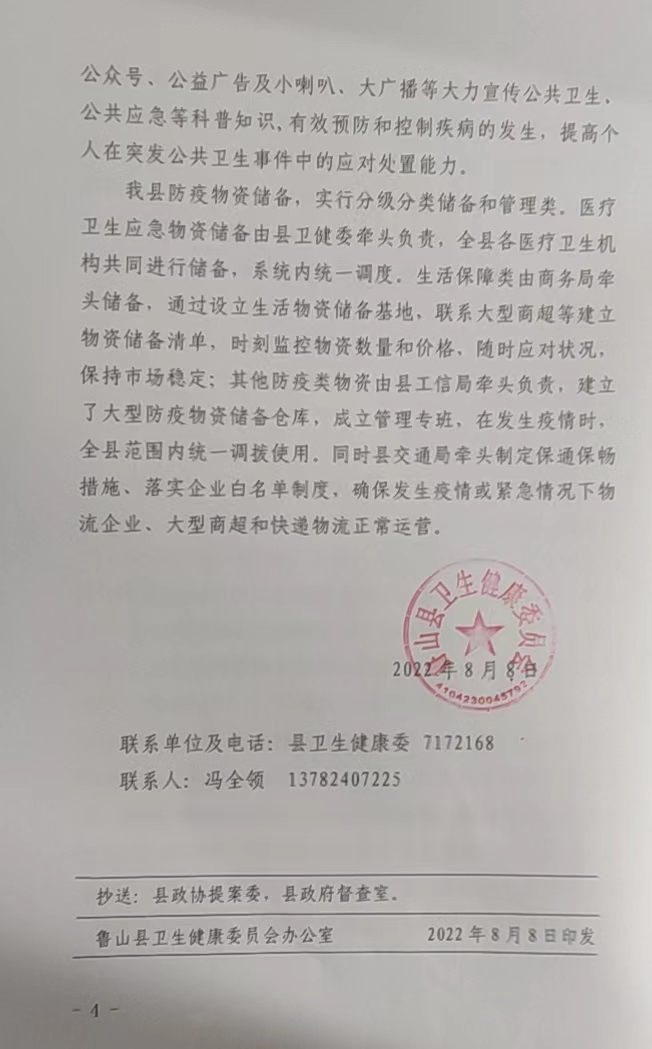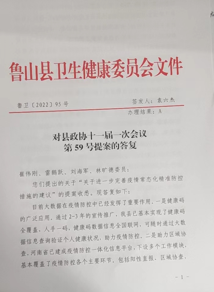 鲁山县卫生健康委员会对县政协十一届一次会议第59号提案的答复